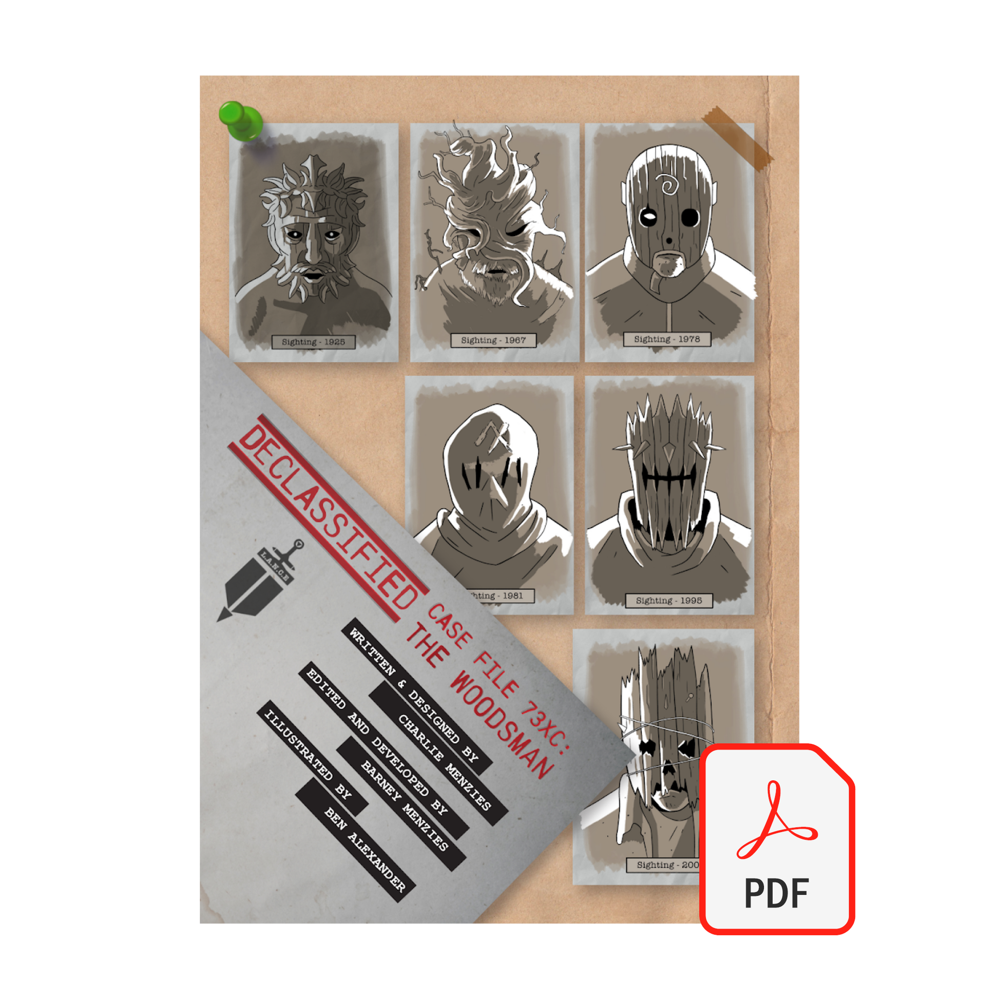 Create a cautionary tale fit to frighten any player at the table. Explore the mythos behind The Woodsman, a supernatural slasher who defends the woods from the incroach of mankinds influence. This case file features background information about sightings and dissapearances and all the loe you could need to bring The Woodsman to life in your own tales. It also includes a profile and rules for playing The Woordsman in the SHIVER RPG.